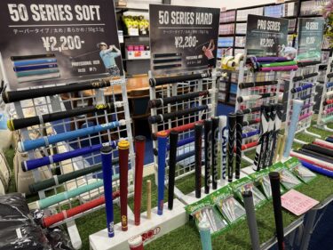 本日より2日の月曜日まで 【№1グリップ交換会】 開催しております。 交換工賃が無料でグリップ交換できますので、気になる方は是非どうぞ! カラフルなグリップが並んでおります♪ その場で交換できるので、フィッティングから交換までその場で行えます。